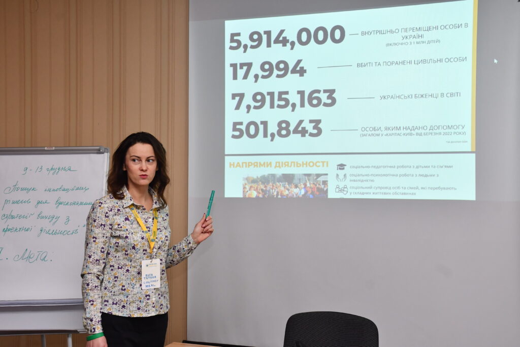 Під час заходу команда поглибила навички генерації та оцінки креативних ідей, розробила інноваційні рішення для ефективного завершення проєкту. Також фахівцям БО «БФ «Карітас-Київ» вдалося спільно сформувати стратегії сталого виходу з проєкту, враховуючи потреби цільової аудиторії, та зміцнити командну співпрацю для досягнення стратегічних цілей.